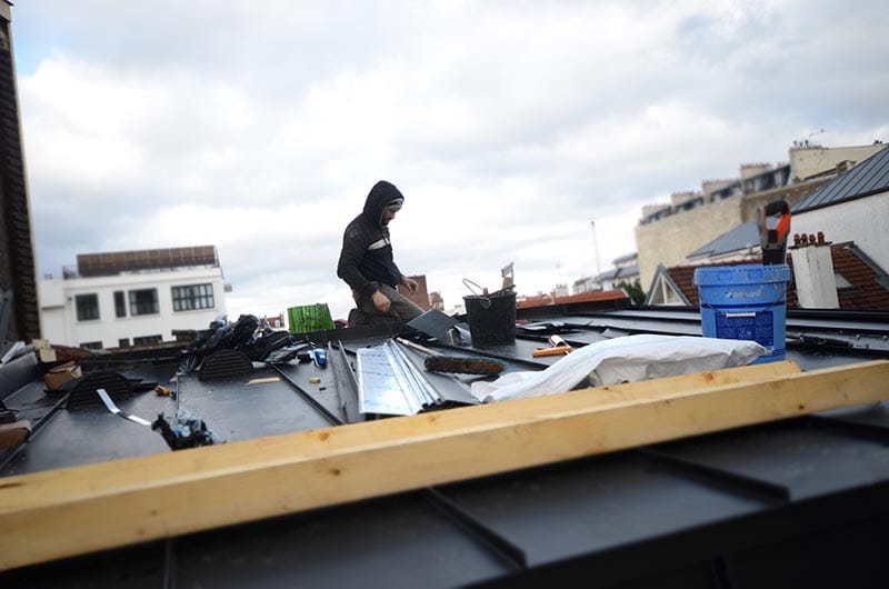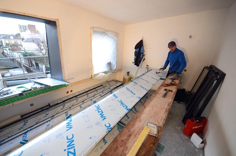 La pose de ce type de matériaux est plus complexe – demandant plus de précaution pour la mise en œuvre – les feuilles de zinc arrivent protégées par un film plastique, avant d’être découpées et façonnées sur place. Un travail d’orfèvre en quelque sorte. Aucune soudure, aucune rayure ne doivent en effet apparaitre ! Seuls des ouvriers spécialisés se lancent dans ce genre de toiture. Patience et minutie sont leurs maîtres-mots. Mais le résultat est unique.