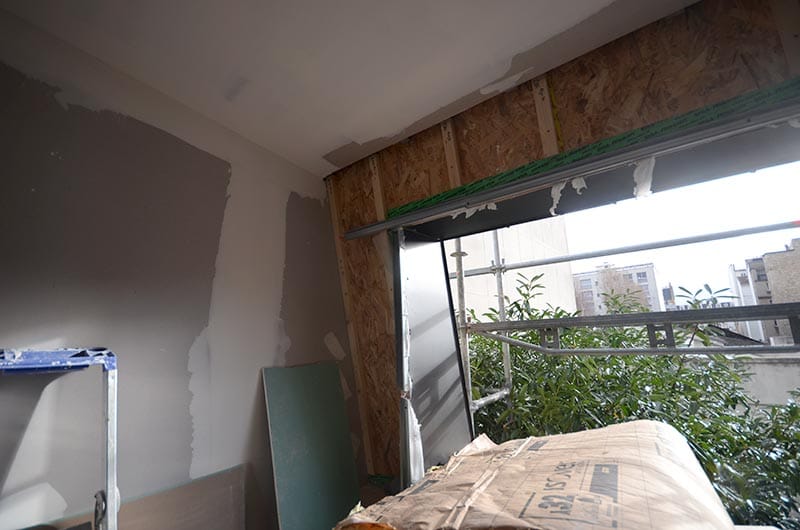 Dans le même temps, les maçons recouvrent les façades de la maison en bois d’un enduit tramé et multicouches sur de l’isolant en fibre de bois. L’échafaudage est en place pour les deux corps d’état.