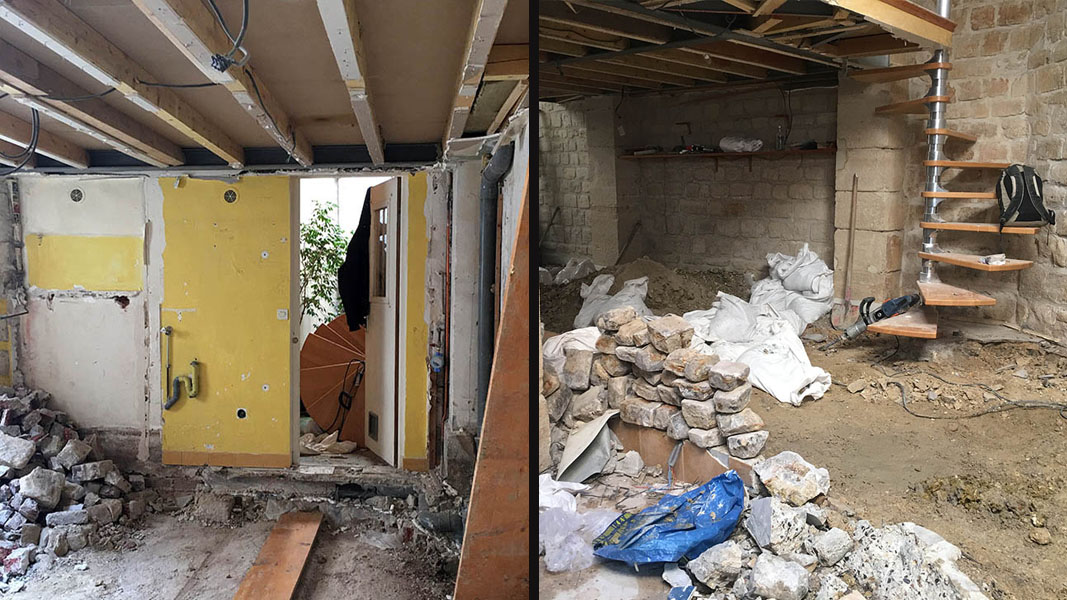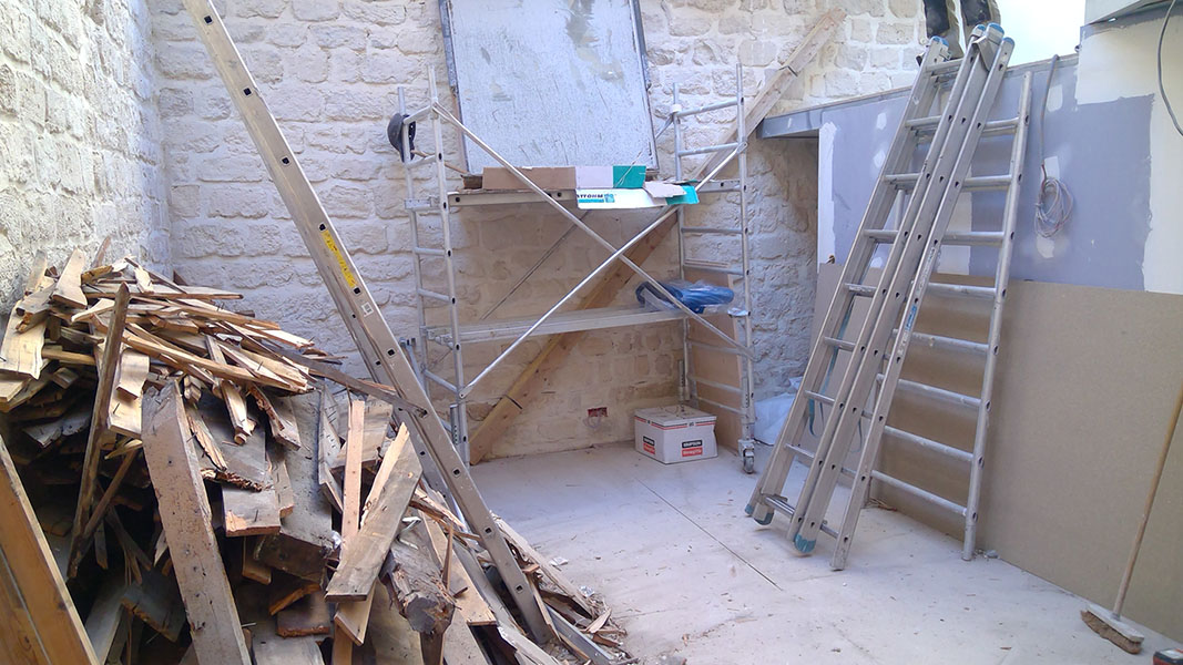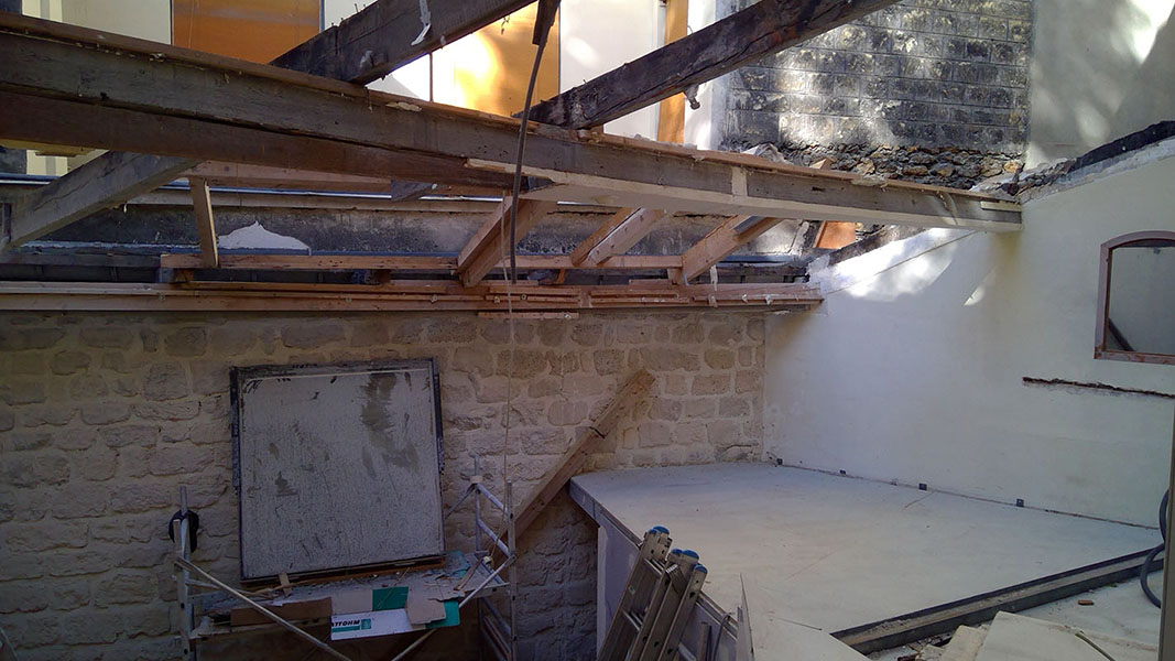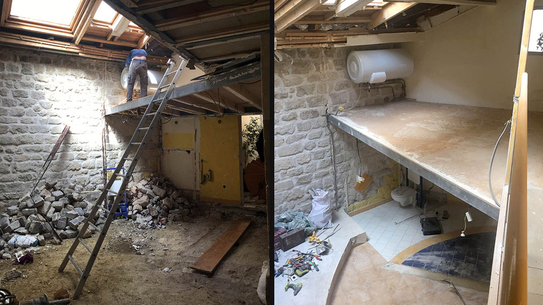 Les travaux de démolition ont mis l’espace à nu, toiture, cloisons, la dalle du Rdc décaissée de 20 cm… soit au total 35 m3 de gravats !