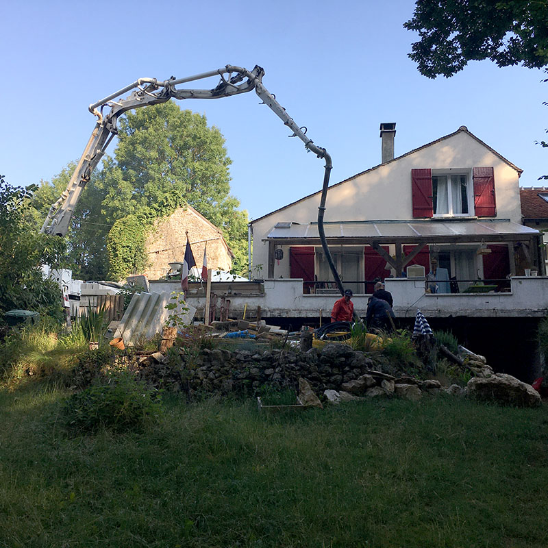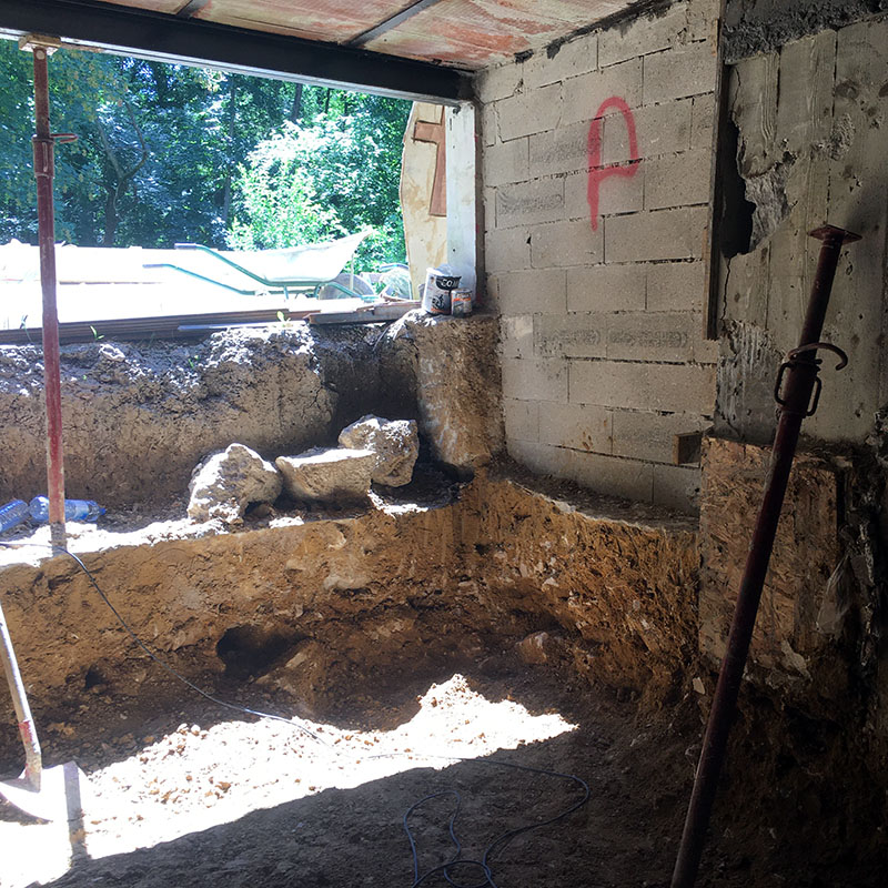 Après étude du sol, il était possible de renforcer les fondations existantes et de décaisser le sol afin de rendre habitable ce nouvel espace.