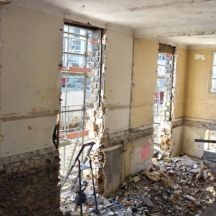 Une réhabilitation en 9 logements a été retenue, étude réalisée par l’architecte Romain Lachaniette… Les travaux de démolition ont commencé dès novembre 2014…