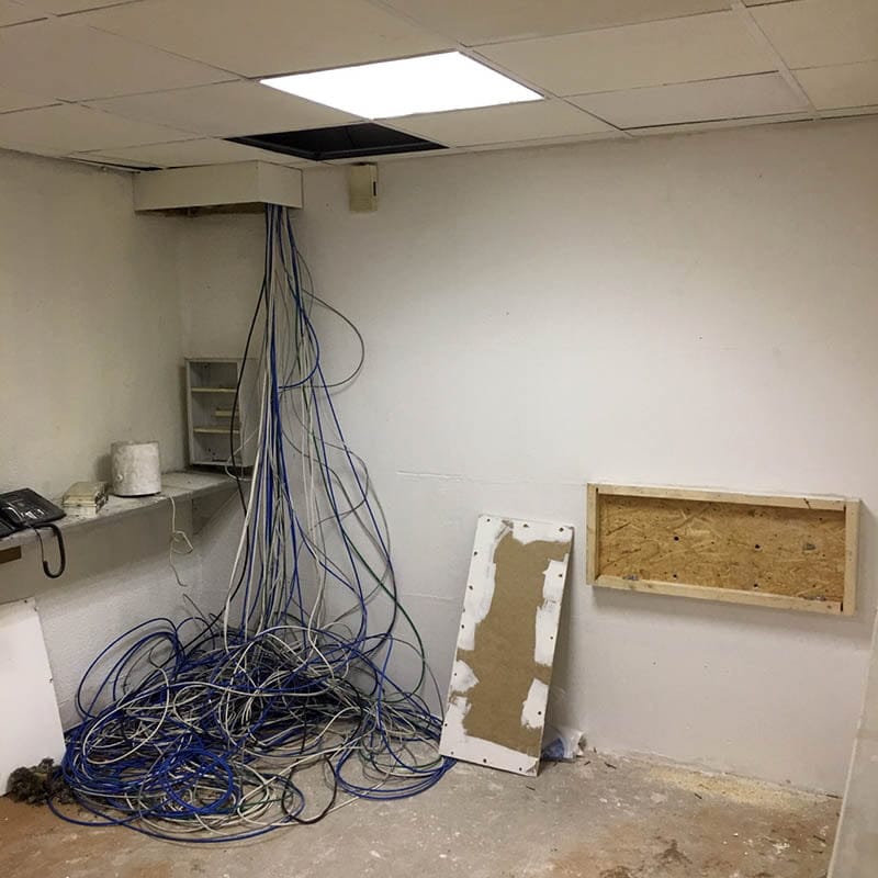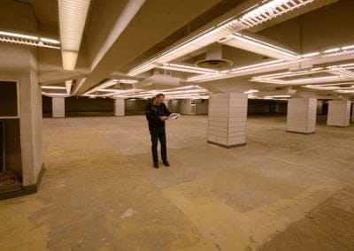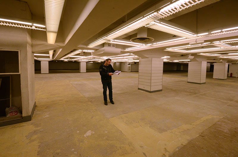 Sur l’ensemble du plateau de 2500 m2, nous allons déposer l’éclairage existant et préparer les fixations du futur éclairage. Ces fixations devront soutenir 340 kg de matériel électrique.